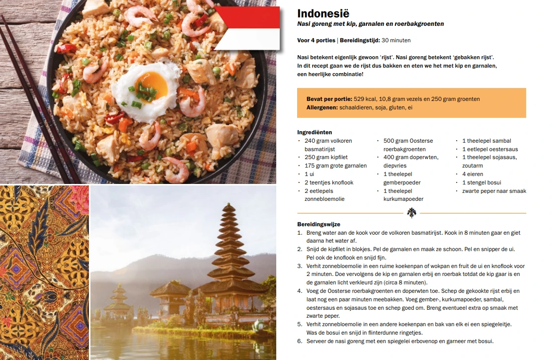 Verschillende werelddelen hebben heerlijk gerechten. Hieronder een assortiment van enkele gezonde gerechten uit verschillende werelddelen van de website www.wkof.nl een aanrader voor iedereen die een lekker en gezond recept zoekt of alles wil weten over kanker.