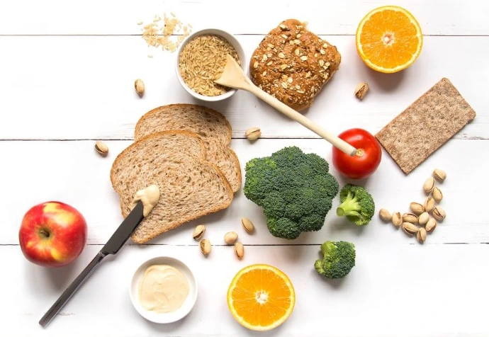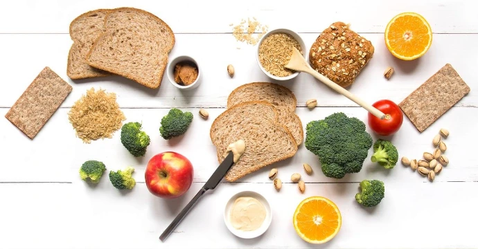 - volkoren graanproducten zoals bijvoorbeeld volkoren pasta, bulgur, zilvervliesrijst, bulgur, volkoren couscous, volkoren brood, roggebrood, muesli